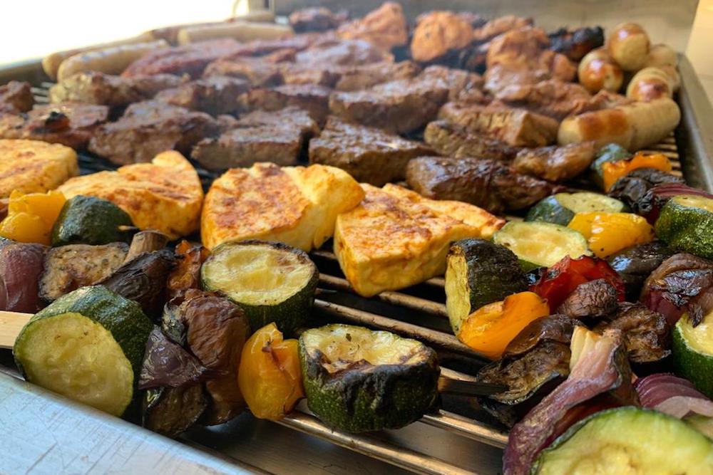 Fleisch, Käse, Gemüse, Früchte, Brot