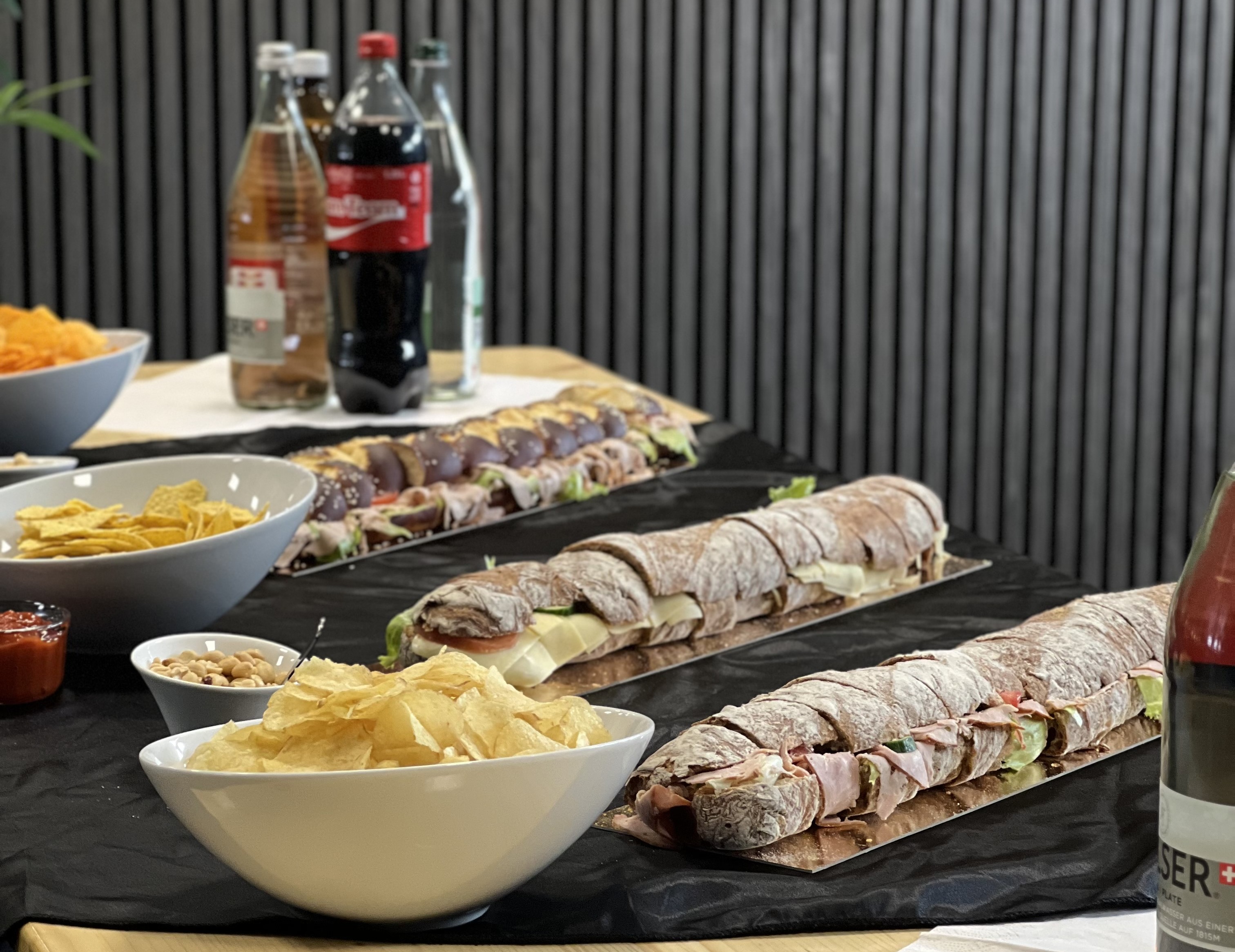 inkl. Softgetränke, hausgemachte Sandwiches (Fleisch, Käse, Salami, Schinken), Chips und Nüssli